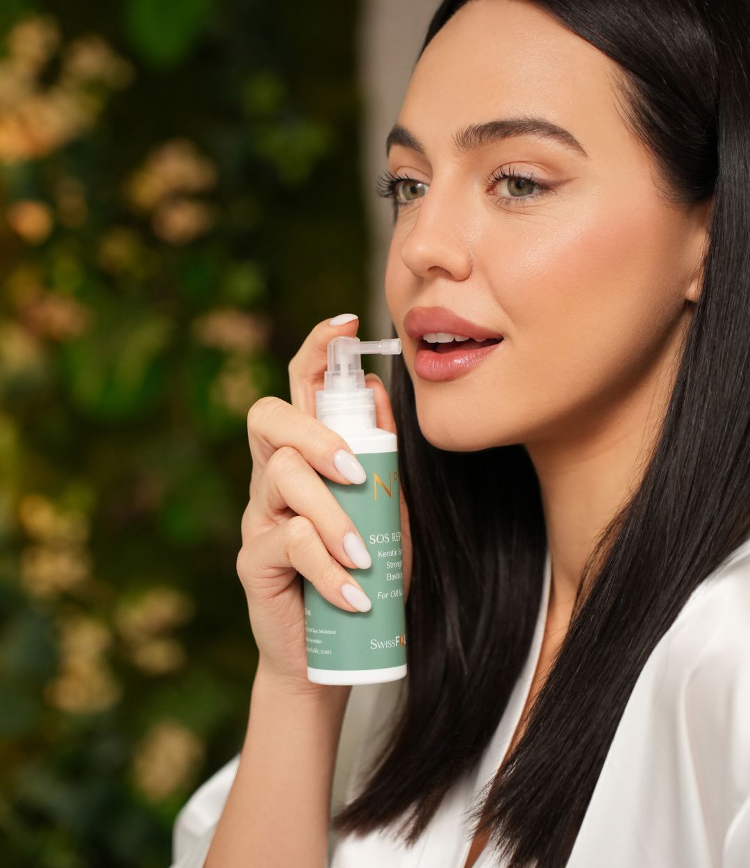 The nano-sized active keratin substances are 100% absorbed by the oral mucous membranes as a result of the direct sprays into the mouth.